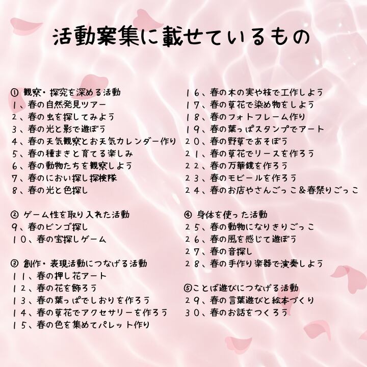 ・アイデアが豊富→30個の春の遊び・活動案で、毎日の保育がもっと楽しくなります。