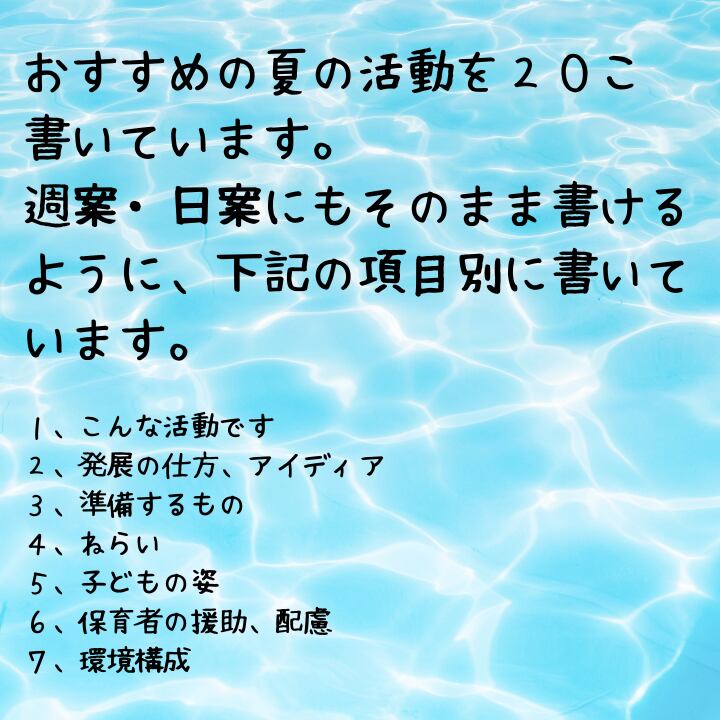 ・アイデアが豊富→20個の夏の遊び・活動案で、毎日の保育がもっと楽しくなります。