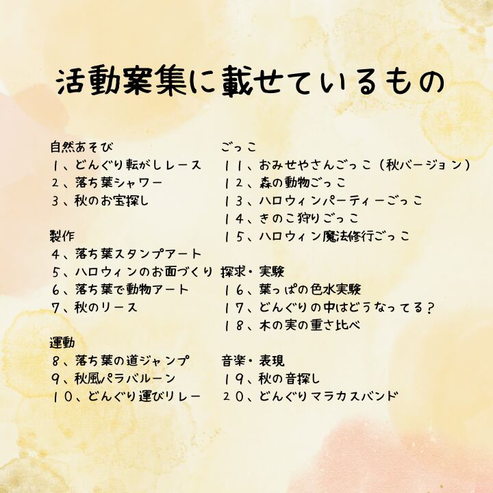 ・アイデアが豊富→20個の秋の遊び・活動案で、毎日の保育がもっと楽しくなります。
