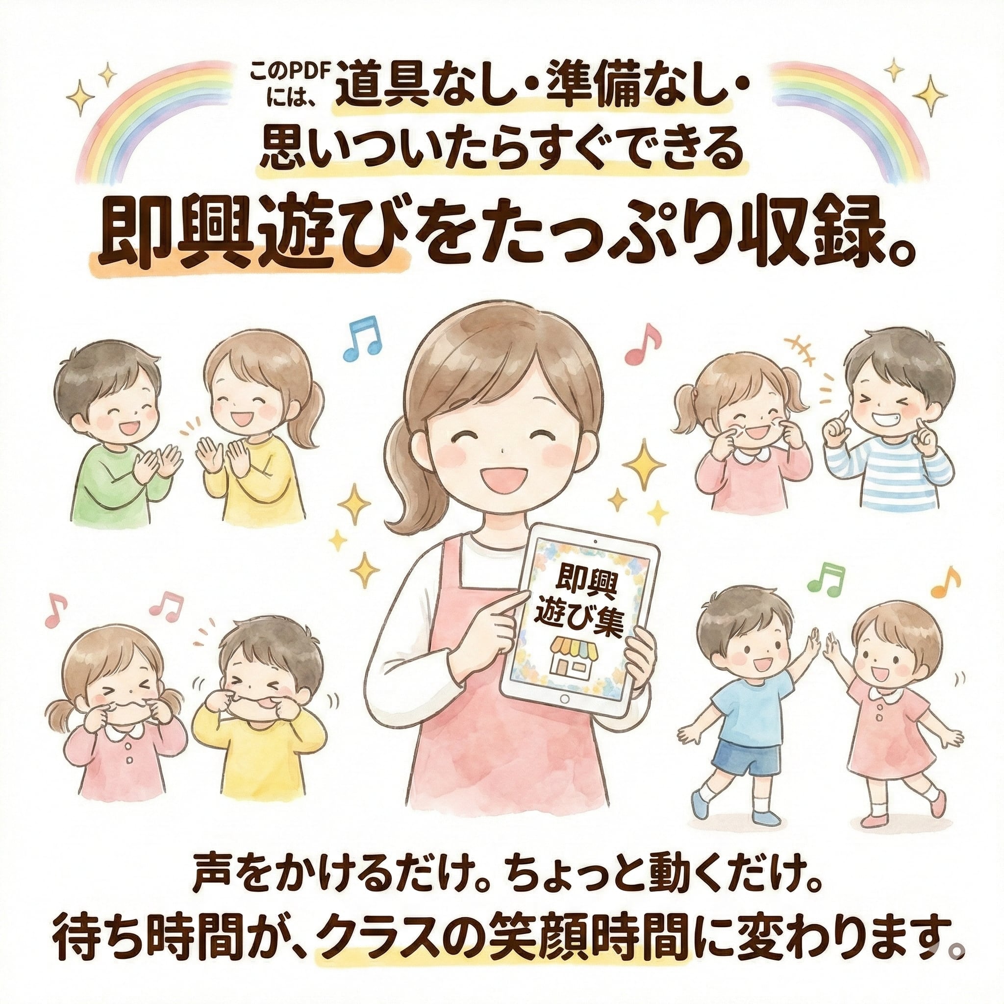 このPDFには、道具なし・準備なし・思いついたらすぐできる即興遊びをたっぷり収録。