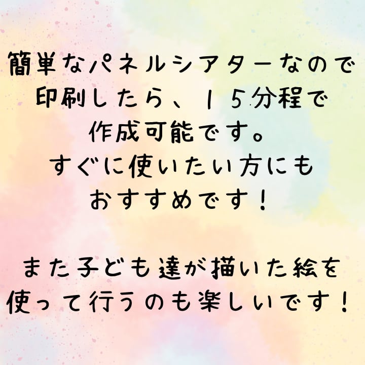 とても簡単なパネルシアターなので、印刷したら15分程で作成可能です。すぐに使いたい方にもおすすめです!