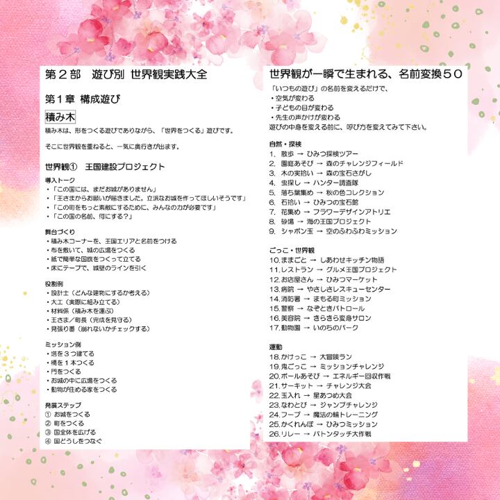 この教材では、どんな遊びでも発展できる方法を体系的にまとめました。